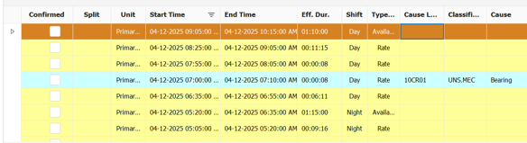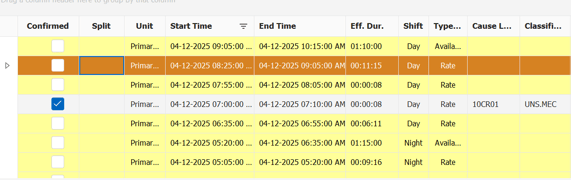 Once confirmed, the event will change from blue to white in the data grid and the Check Box under the column heading Confirmed will have a tick in it.