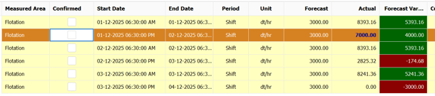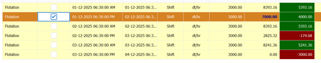 All production lines will appear highlighted yellow within the data grid.