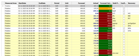 The updated Actual Production value will now appear in bold in the grid, indicating it has been modified from the original entry.