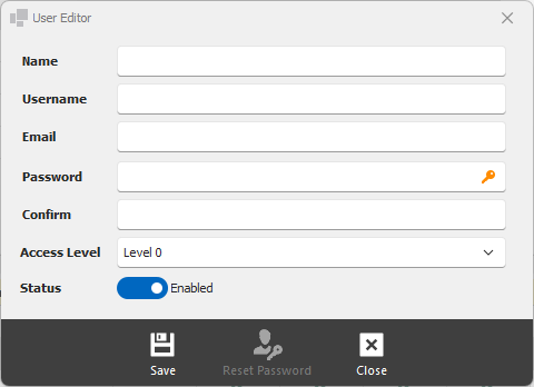 Access Level - select the access level for the user. Consult the chart to see what different access levels are allowed to do.