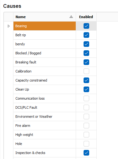 Select the desired Cause to enable. Click on the checkbox to enable.