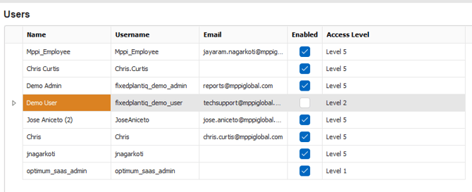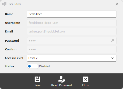Access Level - select the access level for the user. Consult the chart to see what different access levels are allowed to do.